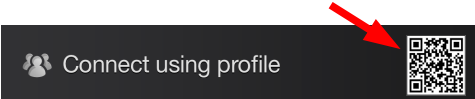 - With the Connect using profile window, press the QR Code icon to begin